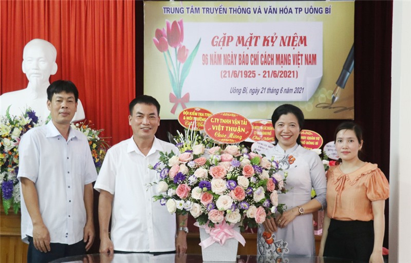 Các doanh nghiệp trên địa bàn đến chúc mừng Trung tâm TT-VH thành phố nhân Ngày Báo chí cách mạng Việt Nam.