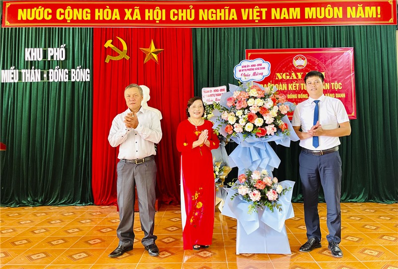 Lãnh đạo phường Vàng Danh tặng hoa chúc mừng.