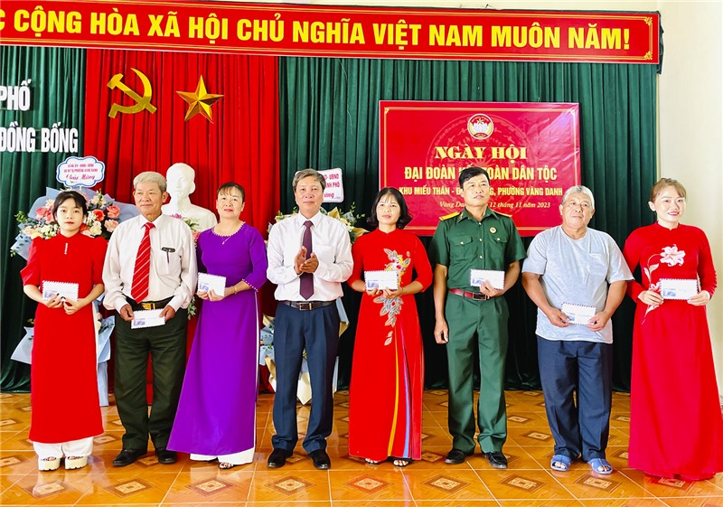Dịp này, UBND phường Vàng Danh đã khen thưởng 35 hộ gia đình văn hoá tiêu biểu xuất sắc, 7 tập thể và 26 cá nhân có thành tích xuất sắc trong thực hiện Cuộc vận động “Toàn dân đoàn kết xây dựng nông thôn mới, đô thị văn minh” năm 2023 . Khu đã phát động phong trào thi đua năm 2024, cổ vũ cán bộ, đảng viên và Nhân dân quyết tâm thực hiện thắng lợi các mục tiêu, nhiệm vụ đề ra.