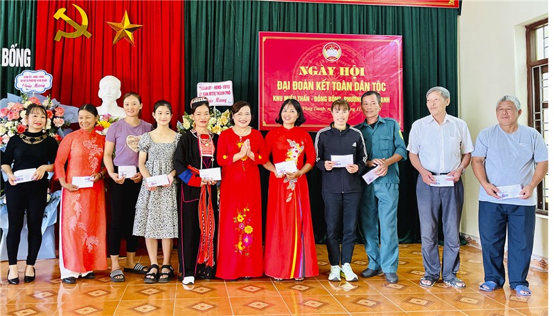 Sáng 12/11, Khu Miếu Thán - Đồng Bống, phường Vàng Danh tổ chức Ngày hội Đại đoàn kết toàn dân tộc năm 2023. Tới dự có đồng chí Nguyễn Văn Thành, Uỷ viên BTV Thành ủy, Phó Chủ tịch Thường trực UBND thành phố; lãnh đạo phường Vàng Danh.