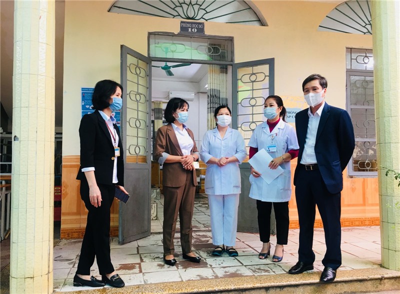 Đoàn kiểm tra tại điểm tiêm Trường THPT Uông Bí.