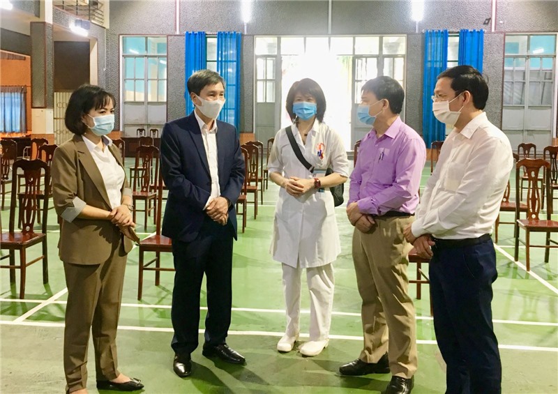 Đoàn kiểm tra tại điểm tiêm Trung tâm GDNN&GDTX Uông Bí.