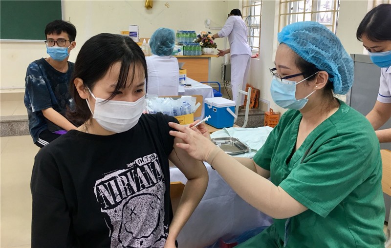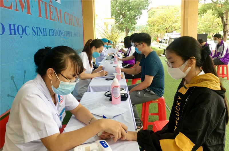 Công tác tiêm chủng vắc xin ngừa Covid-19 tại điểm tiêm Trường THPT Uông Bí được tổ chức đúng quy trình.