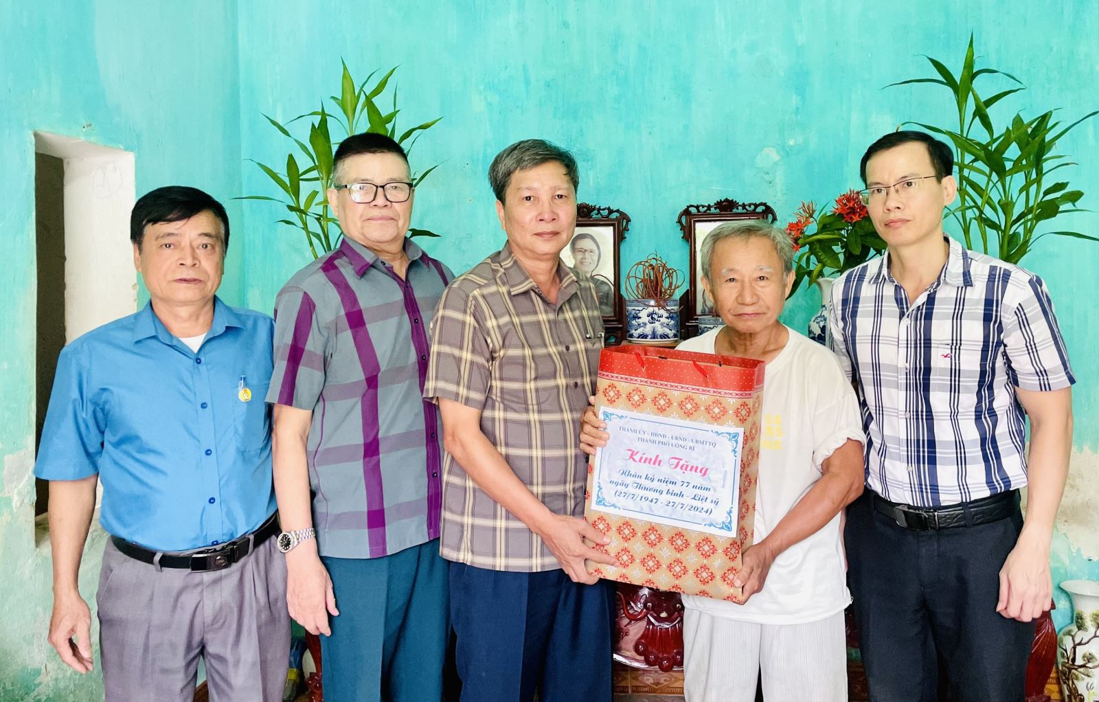 Hướng tới kỷ niệm 77 năm ngày Thương binh - Liệt sĩ 27/7 (1947-2024), đồng chí Nguyễn Văn Thành, Uỷ viên BTV Thành ủy, Phó Chủ tịch Thường trực UBND thành phố đã đến thăm, tặng quà các thương binh, vợ liệt sĩ trên địa bàn phường Quang Trung và Bắc Sơn. Cùng đi có đồng chí Hoàng Xuân Quyến, Chủ tịch Hội Nạn nhân chất độc da cam/đioxin thành phố, đại diện Phòng LĐ-TB&XH thành phố.