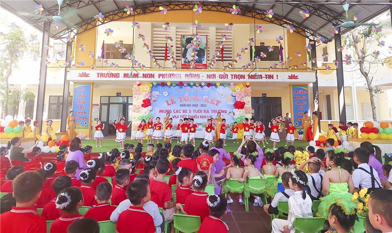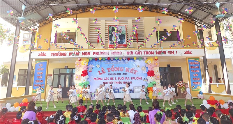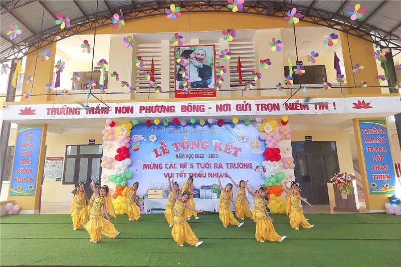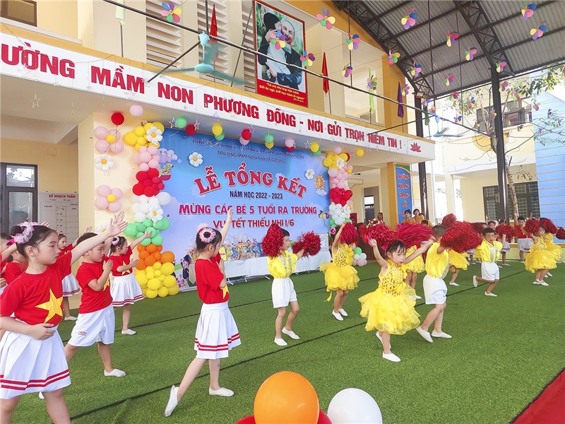 Một số tiết mục văn nghệ sôi động do các cháu thiếu nhi Trường Mầm non Phương Đông biểu diễn.