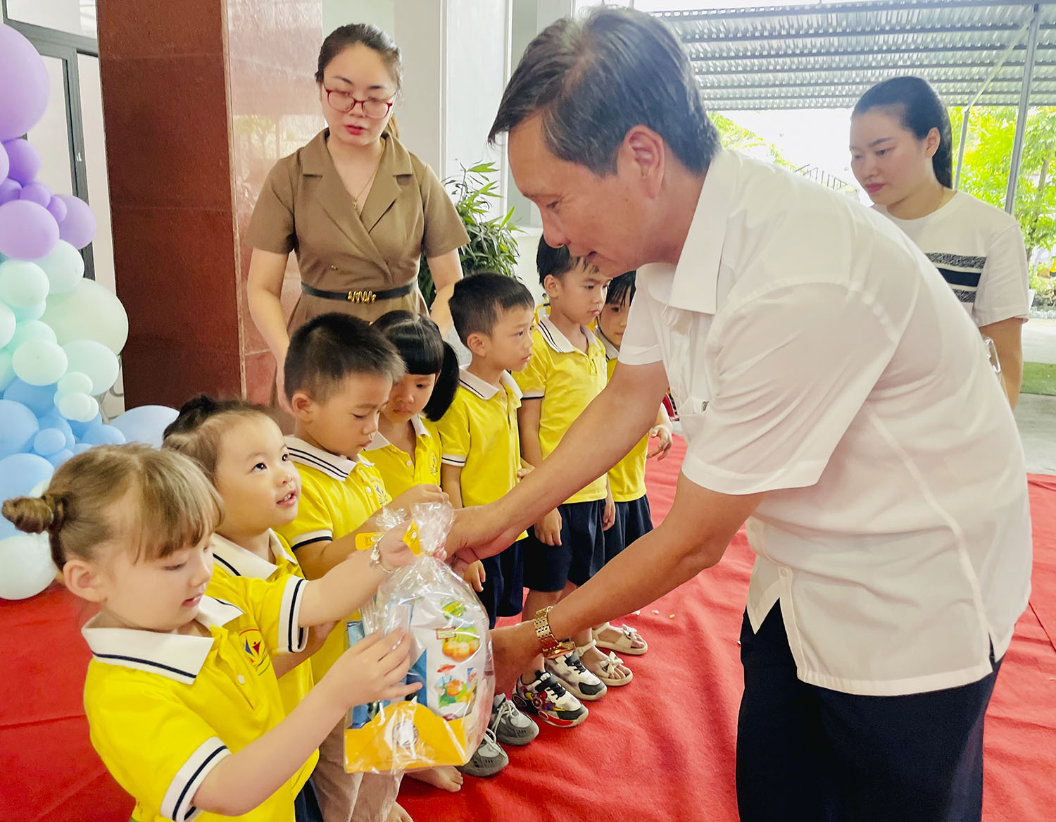 Phó Chủ tịch Thường trực UBND thành phố Nguyễn Văn Thành thăm, tặng quà Quốc tế thiếu nhi tại Trường Mầm non song ngữ Montesori Vân Anh.