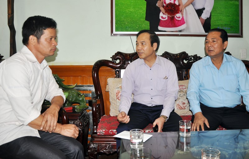 Đồng chí Đặng Huy Hậu, Phó Chủ tịch Thường trực UBND tỉnh chia sẻ, động viên chủ Cửa hàng nội thất Tùng Hằng.
