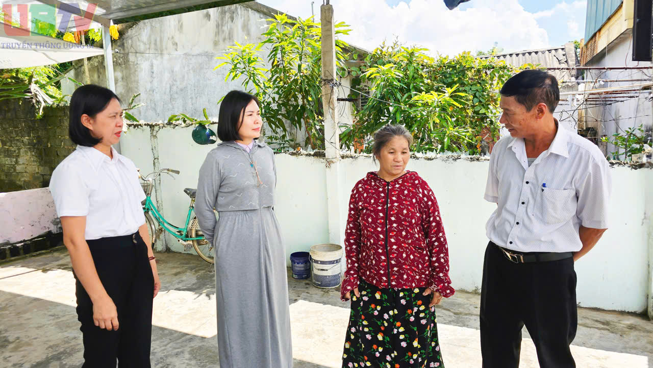 Phó Chủ tịch UBND phường Uông Bí Vũ Thị Hồng Nhung thăm và khảo sát các hộ khó khăn cần hỗ trợ xây nhà