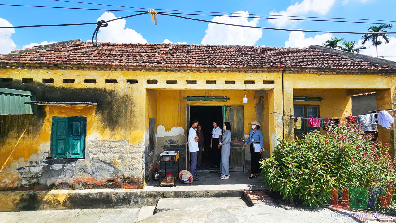 Đoàn đến thăm, khảo sát nhà ở của ông Đặng Văn Đạt, trú tại khu Quang Trung 1, xây dựng từ năm 1992, tường hỏng, mái dột.