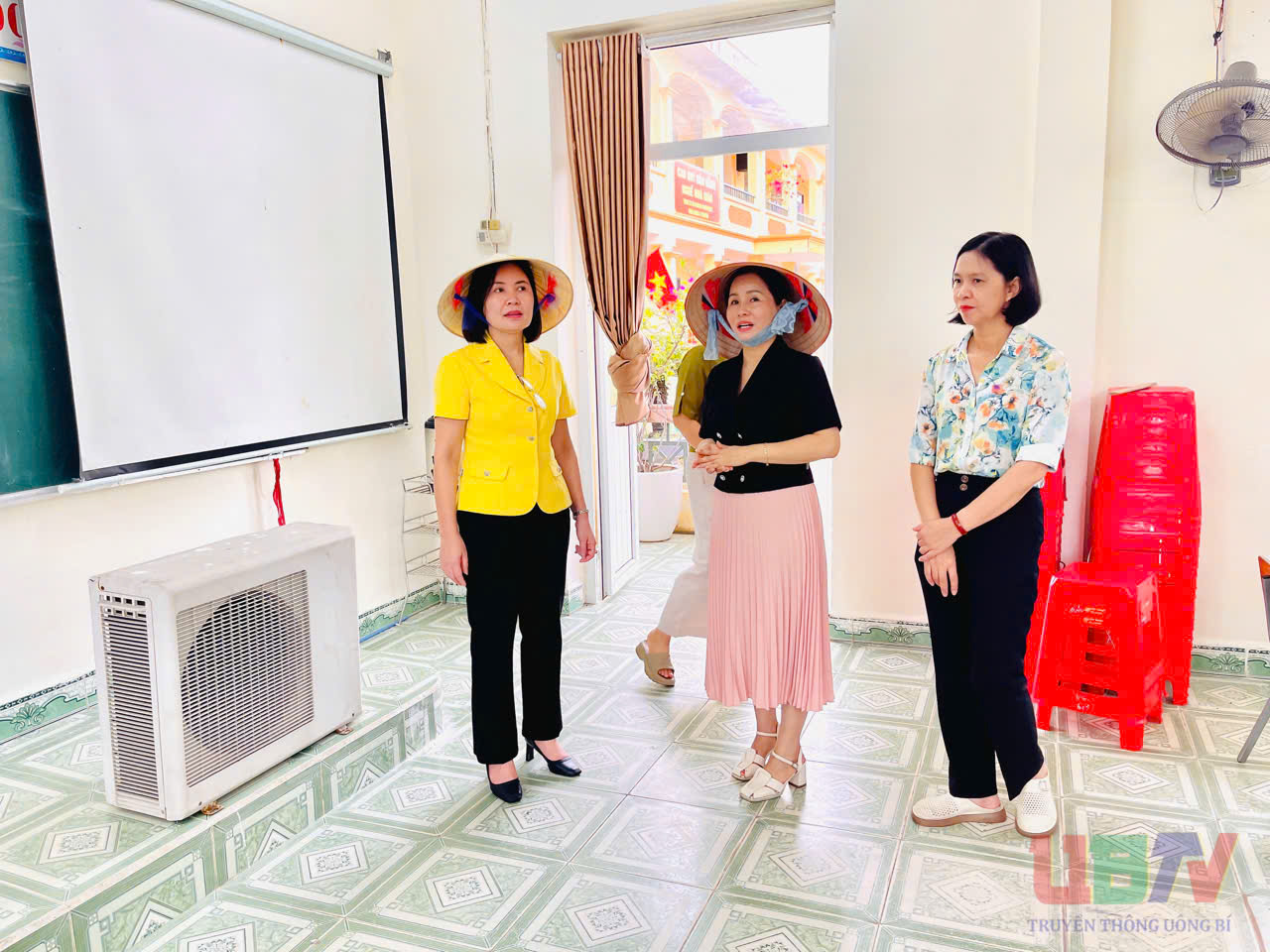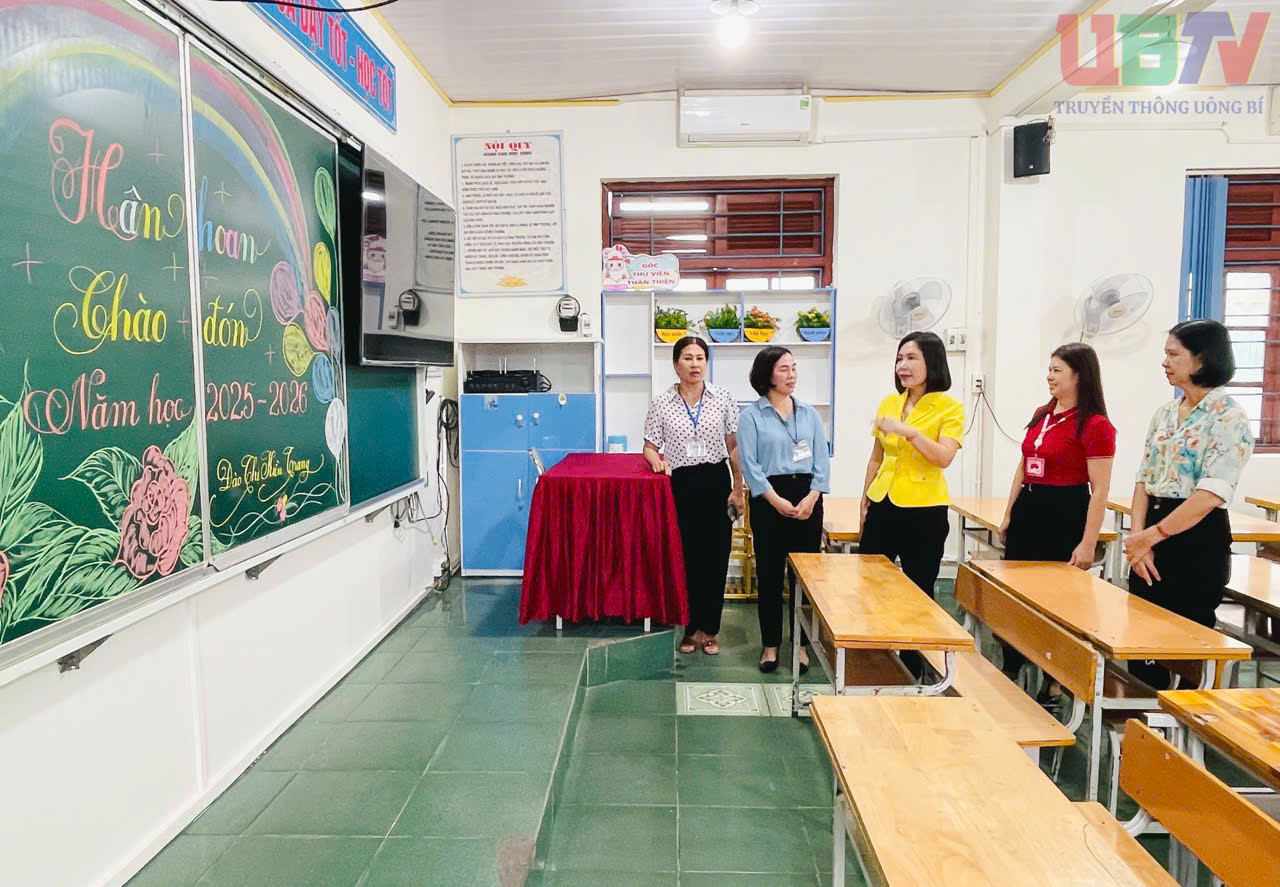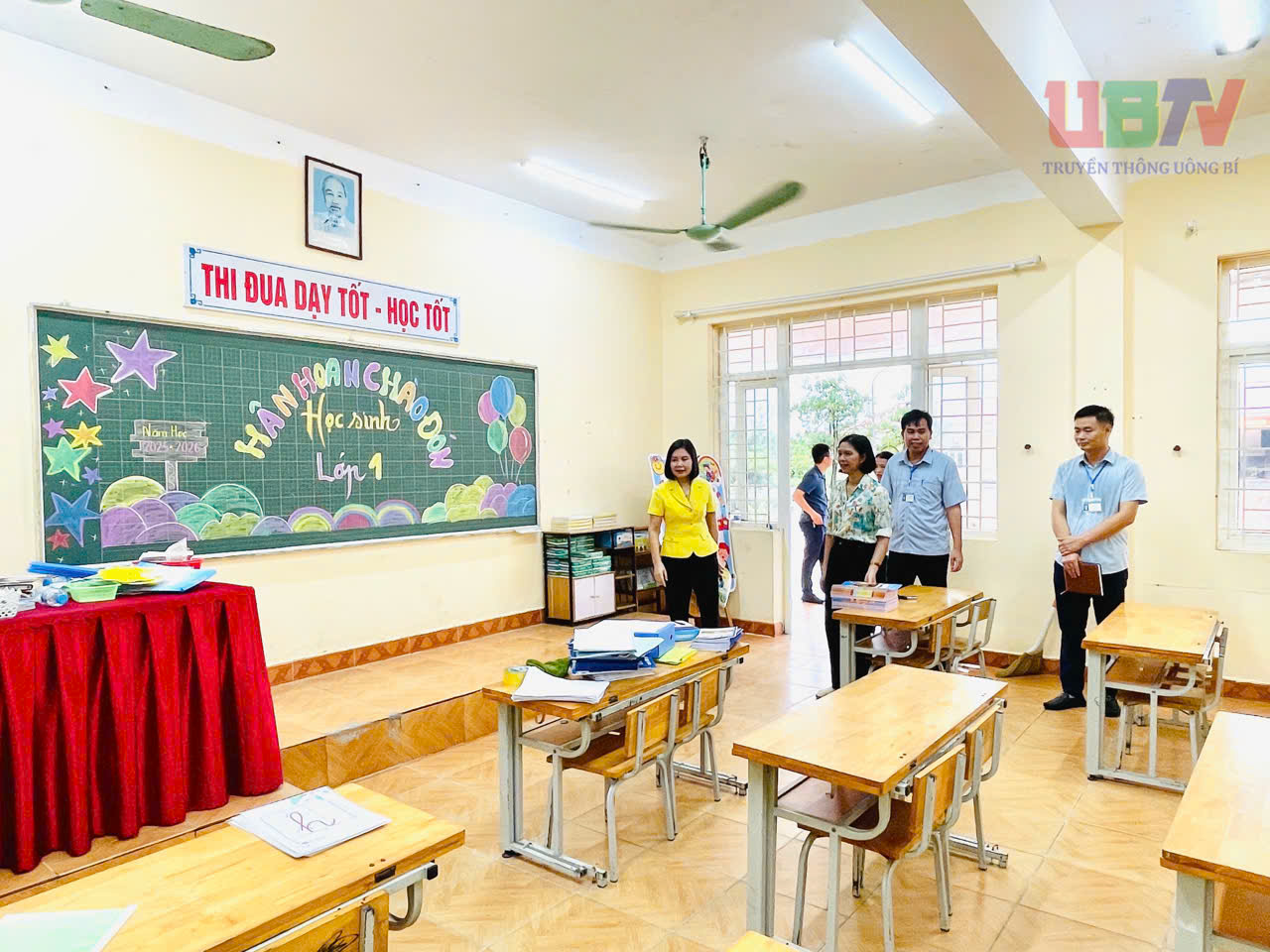 Phó Chủ tịch UBND phường Vũ Thị Hồng Nhung kiểm tra công tác chuẩn bị cho năm học mới 2025-2026
