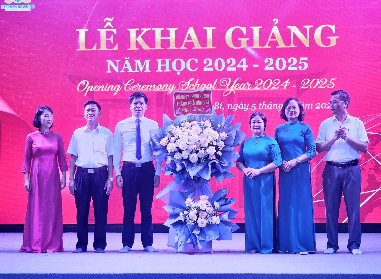 Tại buổi lễ, thay mặt lãnh đạo thành phố, đồng chí Phó Chủ tịch UBND thành phố Nguyễn Đức Hòa đã tặng hoa chúc mừng cô và trò Trường Tiểu học & THCS Quốc tế Stephen Hawking nhân dịp khai giảng năm học mới.