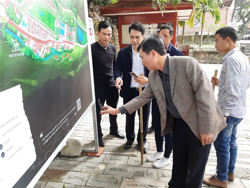 Đồng chí Nguyễn Văn Thành, UV BTV Thành ủy, Phó Chủ tịch UBND thành phố kiểm tra quét mã QR bản đồ 3D tại Yên Tử.
