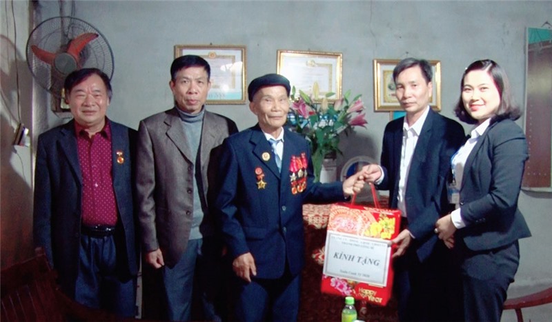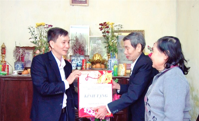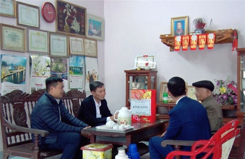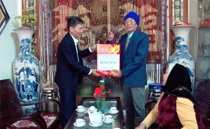 Đồng chí Phó Chủ tịch UBND thành phố tặng quà, chúc Tết ông Bùi Văn Thám và ông Đặng Xuân Côi - người hoạt động kháng chiến, huy hiệu 40, 45 năm tuổi đảng tại phường Vàng Danh (248-136)