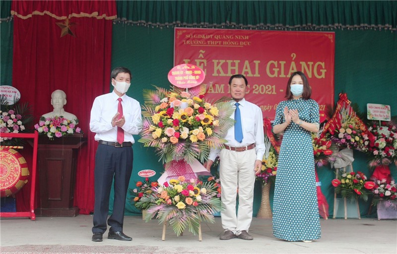 Sáng 05/9, Trường THPT Hồng Đức long trọng tổ chức Lễ khai giảng năm học mới 2021-2022. Chương trình được tổ chức ngắn gọn, đảm bảo yêu cầu về phòng, chống dịch bệnh Covid-19. Dự và chung vui với thầy trò nhà trường có các đồng chí: Nguyễn Thị Hạnh, Tỉnh ủy viên, Phó Chủ tịch UBND tỉnh; Nguyễn Văn Thành, UVBTV Thành ủy, Phó Chủ tịch Thường trực UBND thành phố.