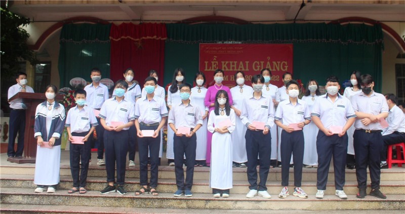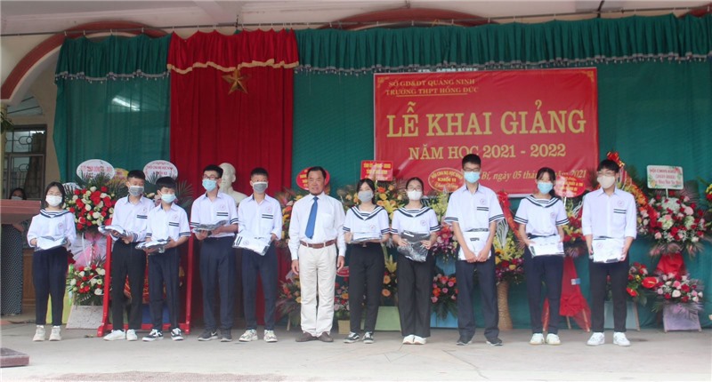 Tại lễ khai giảng, 85 học sinh nghèo vượt khó của nhà trường được nhận quà hỗ trợ năm học mới. Trong đó, 10 em học sinh lớp 10 nhận hỗ trợ quần áo đồng phục của Hội đồng quản trị; 20 em nhận quà của Công ty CP Than Vàng Danh – Vinacomin; 5 em nhận hỗ trợ của Hội Chữ thập đỏ thành phố; 50 em được nhận bảo hiểm thân thể của BSH.