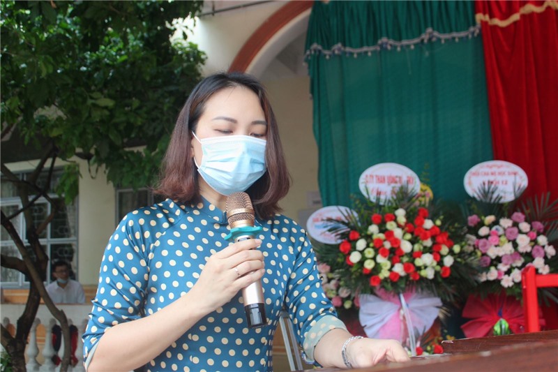 Hiệu trưởng Trường THPT Hồng Đức đọc thư chúc mừng khai giảng năm học mới của Chủ tịch nước.