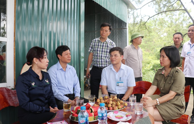 Phó Chủ tịch UBND tỉnh Vũ Thị Thu Thủy cùng đoàn công tác cũng đến tham quan mô hình trang trại của ông Nguyễn Tôn Quyền, khu 5, phường Quang Trung.