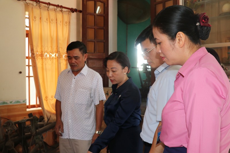 Đồng chí Phó Chủ tịch UBND tỉnh thăm quan mô hình kho lưu giữ nông cụ, đồ gia dụng truyền thống Việt Nam của gia đình ông Đặng Quốc Biên, phường Yên Thanh.