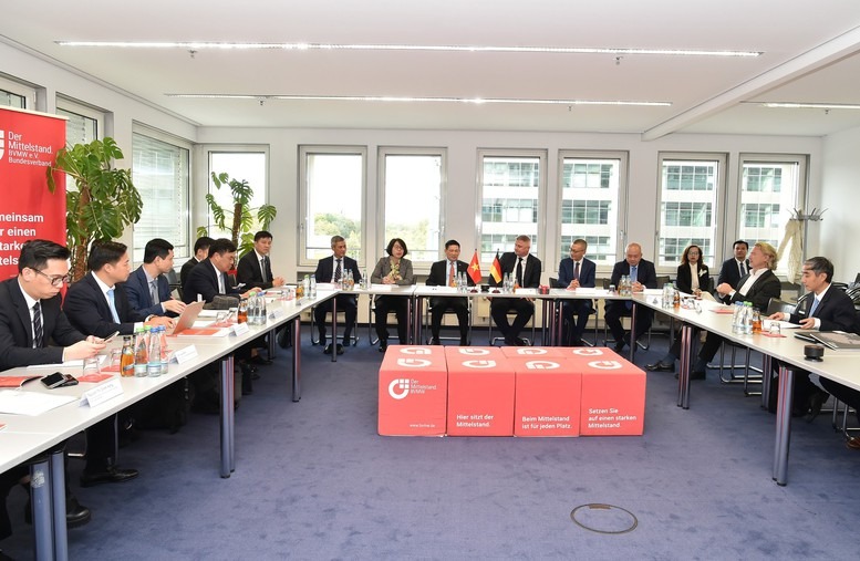 Chiều 9/10 (giờ địa phương), Phó Thủ tướng Chính phủ Hồ Đức Phớc cùng đoàn công tác đã làm việc với Hiệp hội doanh nghiệp vừa và nhỏ Đức (MVWM) – Hiệp hội doanh nghiệp lớn nhất Châu Âu – xương sống của nền kinh tế Đức.