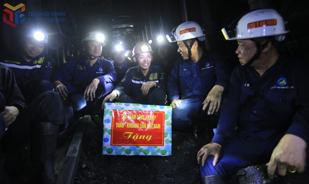 Nhân dịp Tháng Công nhân, lãnh đạo TKV và Đảng ủy Than Quảng Ninh tặng quà cho công nhân Phân xưởng Khai thác 6 (Công ty Than Nam Mẫu).