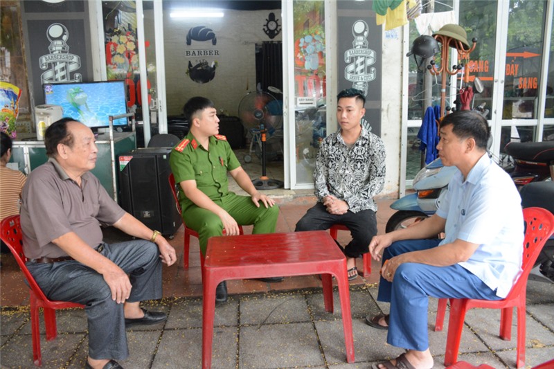 Công an phường Quang Hanh (TP Cẩm Phả) phối hợp các đoàn thể nắm tình hình ANTT trên địa bàn. Ảnh: Hằng Ngần