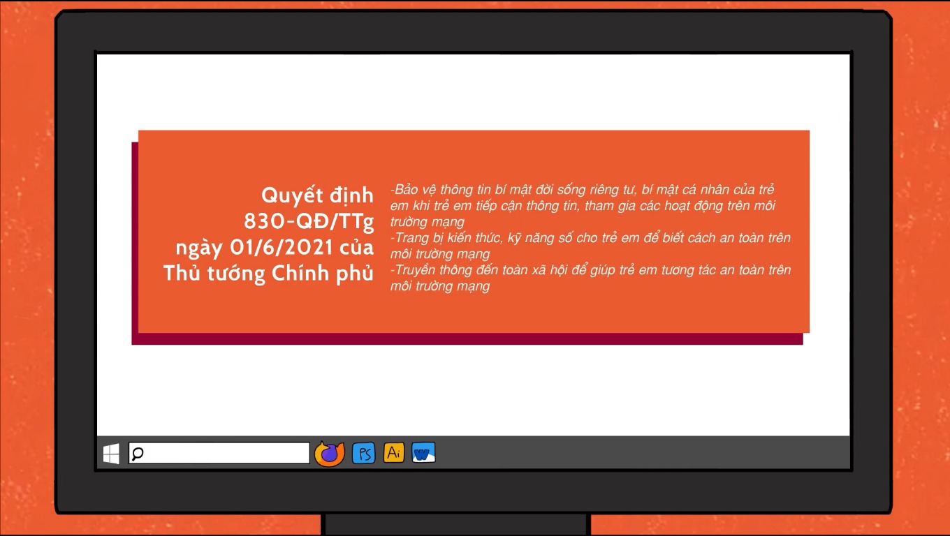 Cũng đồng nhất với tuyên bố ASEAN, tại Việt Nam cũng đã có Quyết định số 830/QĐ-TTG của thủ tướng về bảo vệ và hỗ trợ trẻ em tương tác lành mạnh, sáng tạo trên môi trường mạng giai đoạn 2021-2025, trong đó quy định: