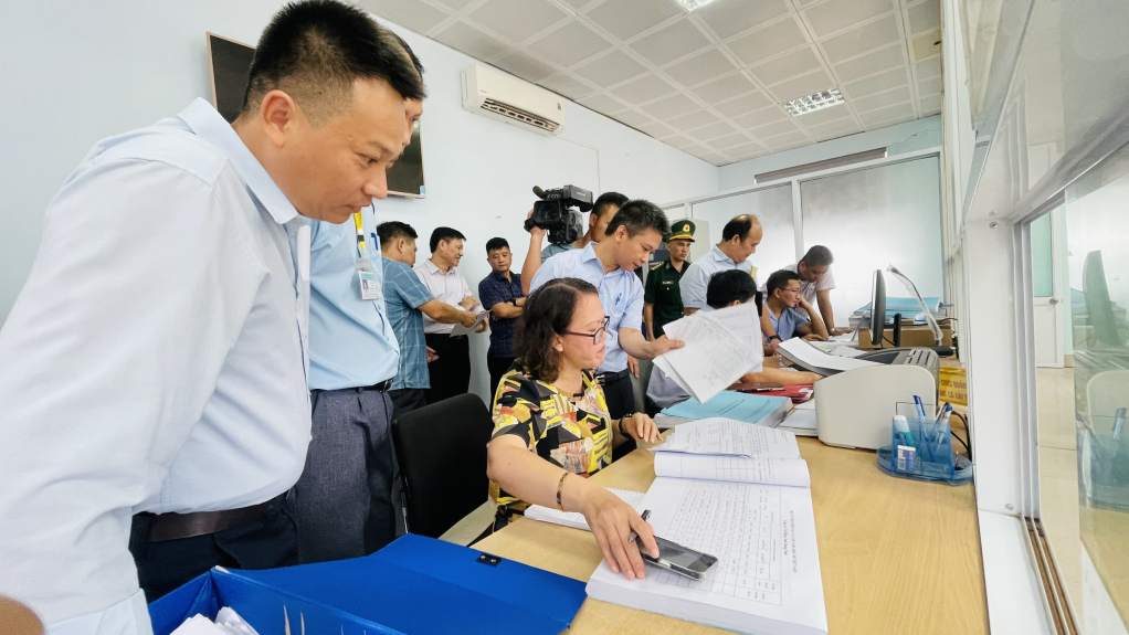 Đoàn công tác của Bộ NN&PTNT kiểm tra việc triển khai chống khai thác IUU tại Văn phòng Kiểm soát nghề cá cảng Cái Rồng (huyện Vân Đồn) ngày 5/8/2023. Ảnh CTV