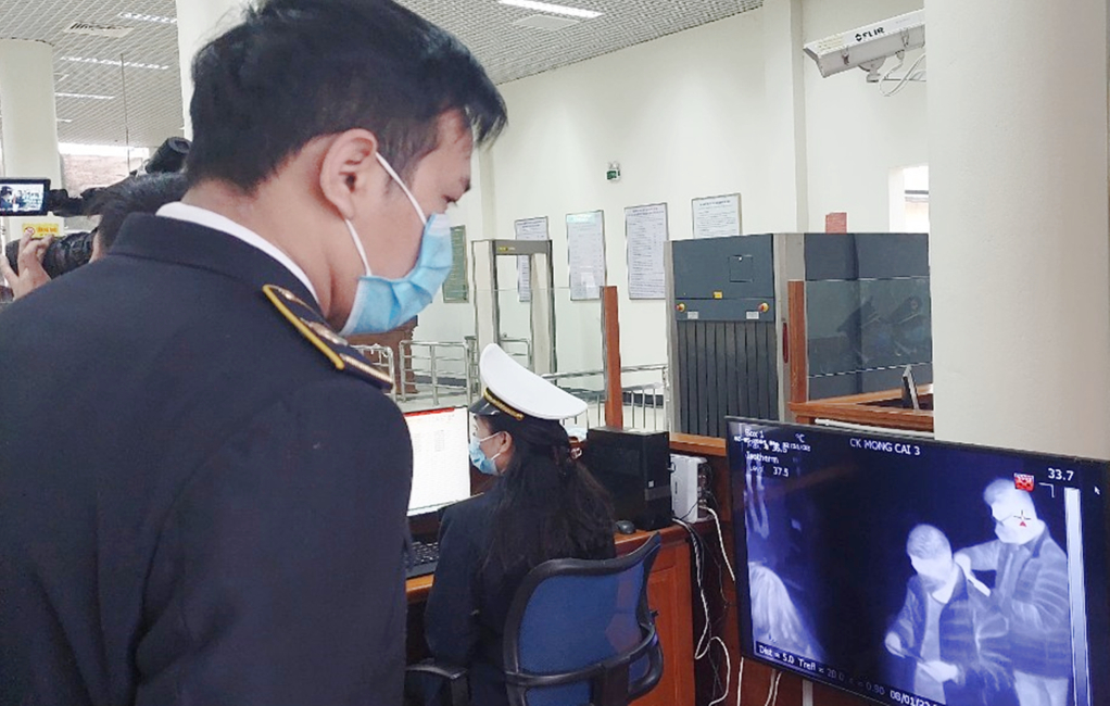 Sử dụng máy đo thân nhiệt từ xa tại Cửa khẩu quốc tế Móng Cái để kịp thời phát hiện những người XNC có biểu hiện sốt.