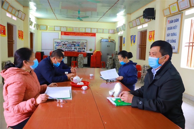 Tổ phòng, chống dịch Covid-19 khu Bình An (thị trấn Bình Liêu) họp triển khai nhiệm vụ hằng tuần. Ảnh: La Lành