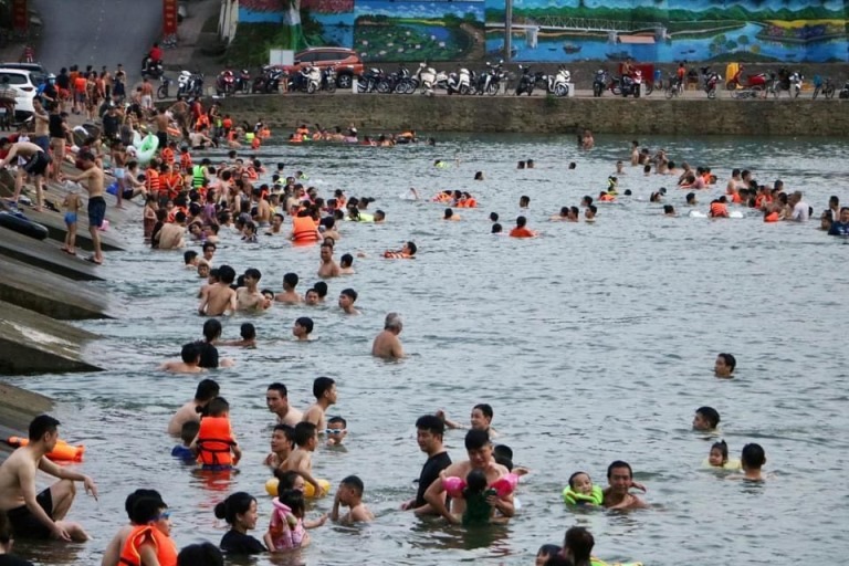 Trẻ em tắm biển, tắm sông nên mặc áo phao và phải có cha mẹ, người lớn trông coi.