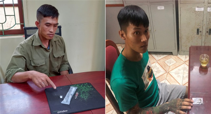 2 đối tượng Nguyễn Văn Điển (trái) và Đoàn Xuân Hải (phải) bị Công an TX Quảng Yên bắt quả tang khi đang tàng trữ trái phép chất ma túy, tháng 5/2022.