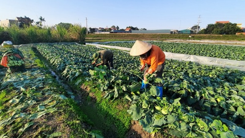 Nông dân xã Tiền An, TX Quảng Yên thu hoạch rau.