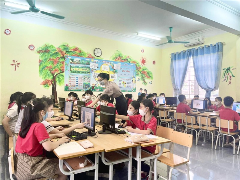 Học sinh trường tiểu học Lê Lợi học tin học.