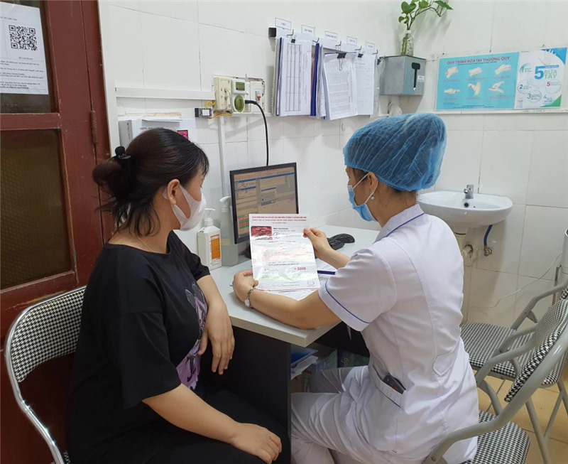 Cán bộ Trung tâm Y tế TP Uông Bí tư vấn cho người dân về tầm quan trọng của sàng lọc chẩn đoán trước sinh bệnh tan máu bẩm sinh.