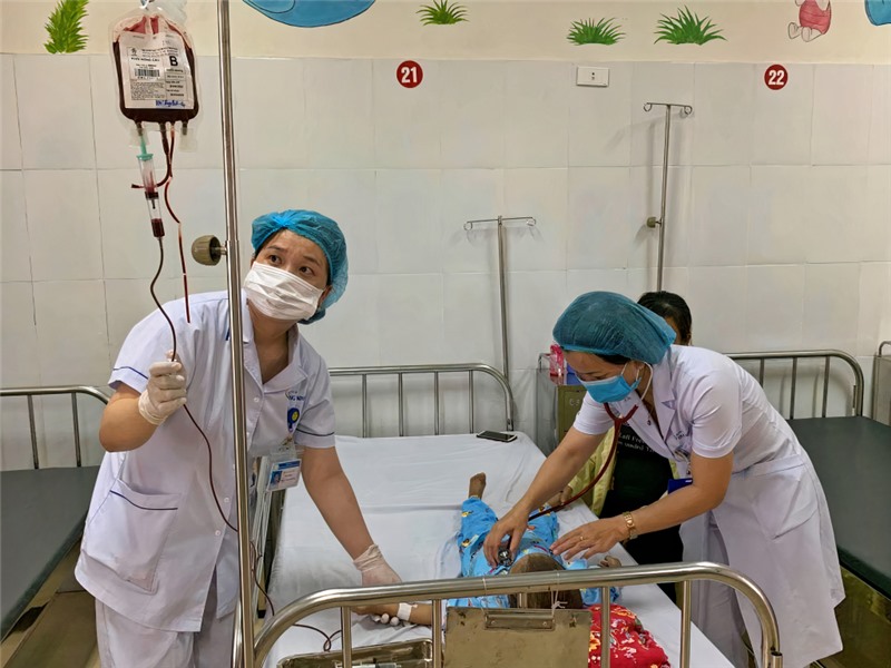 Bác sĩ Bệnh viện Sản Nhi Quảng Ninh điều trị cho bệnh nhi mắc tan máu bẩm sinh.
