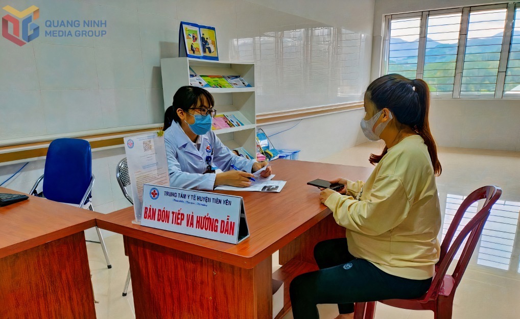 Bác sĩ Trung tâm Y tế huyện Tiên Yên tư vấn sức khỏe cho phụ nữ mang thai.