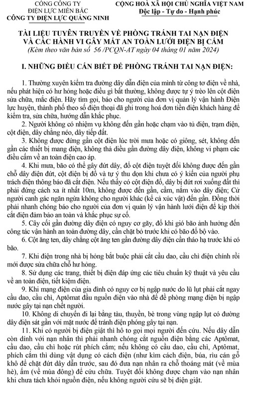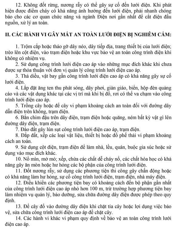 Phòng tránh tai nạn điện và các hành vi gây mất an toàn lưới điện bị cấm