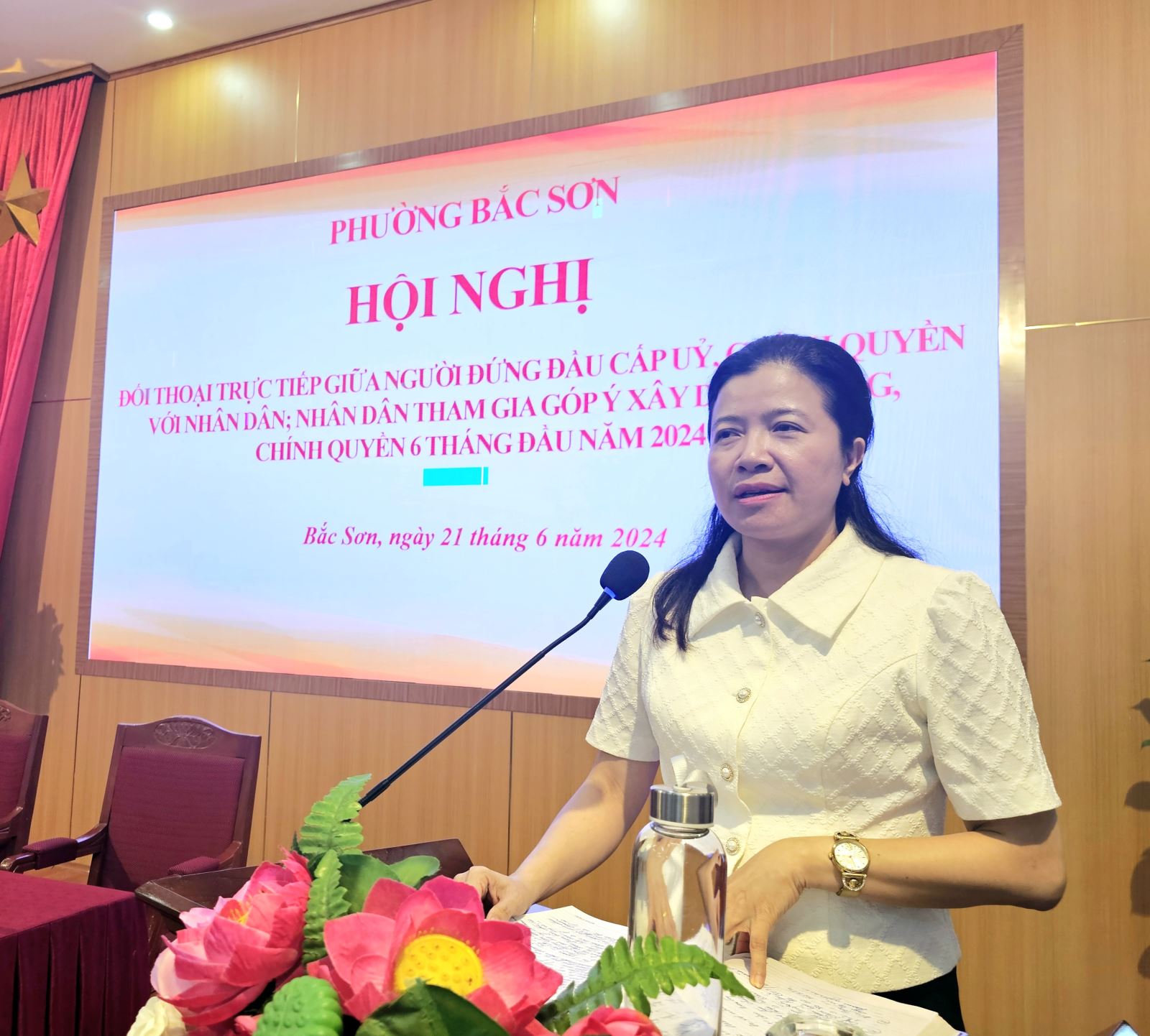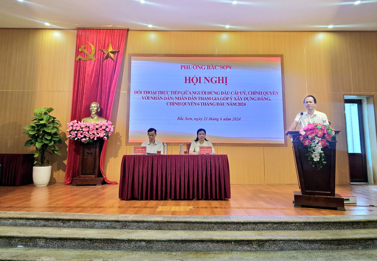 Ngày 21/6, phường Bắc Sơn tổ chức Hội nghị đối thoại trực tiếp giữa người đứng đầu cấp uỷ Đảng, chính quyền với Nhân dân; Nhân dân góp ý xây dựng Đảng, chính quyền 6 tháng đầu năm 2024.