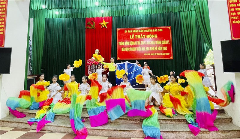 Sáng 23/5, phường Bắc Sơn tổ chức Lễ phát động Tháng hành động vì trẻ em và khai mạc hoạt động hè năm 2023 với chủ đề “Chung tay giảm thiểu tổn hại trẻ em”. Dự chương trình có các đồng chí: Phạm Xuân Thành, Trưởng Phòng Văn hóa – Thông tin thành phố; Lê Hoàng Long, Phó Bí thư Thành đoàn; đại diện Phòng LĐ-TB&XH thành phố, cơ quan thường trực Ban chỉ đạo hoạt động hè thành phố.