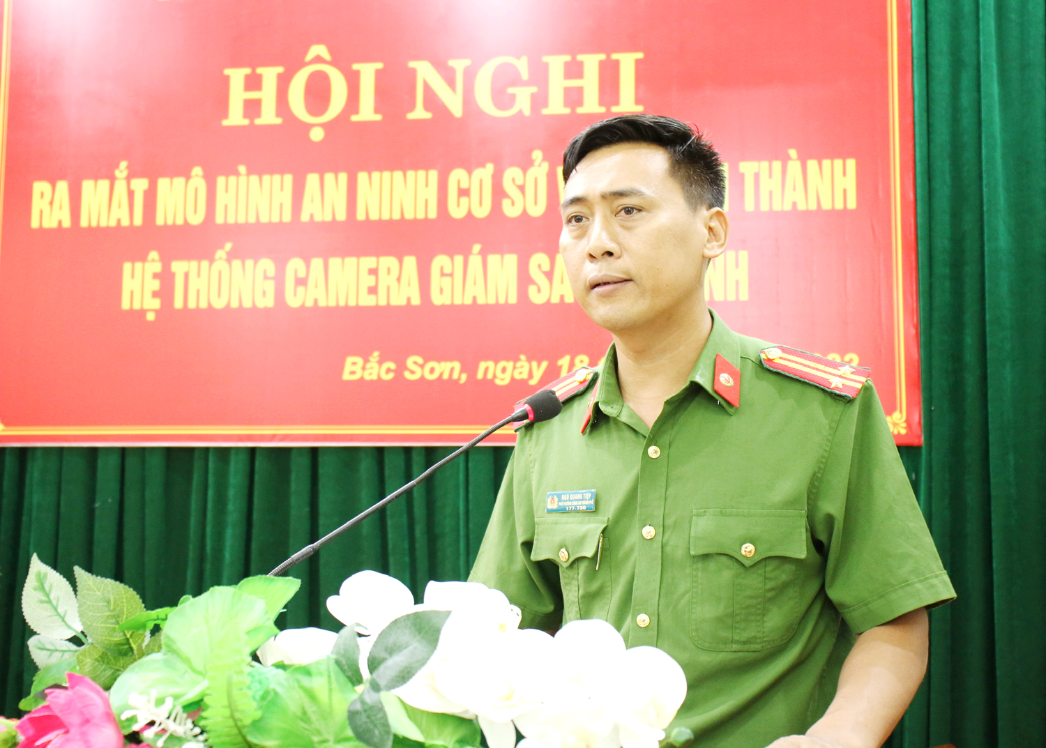 Chiều 18/8, phường Bắc Sơn tổ chức hội nghị công bố quyết định thành lập Ban chỉ đạo, ra mắt mô hình an ninh cơ sở (ANCS) và khánh thành hệ thống camera giám sát an ninh. Tới dự có đồng chí Đào Ngọc Sơn - Uỷ viên BTV, Trưởng Ban Dân vận Thành uỷ, Chủ tịch UB MTTQ thành phố; Trung tá Ngô Quang Tiệp - Phó trưởng Công an thành phố.