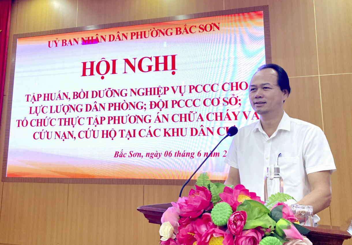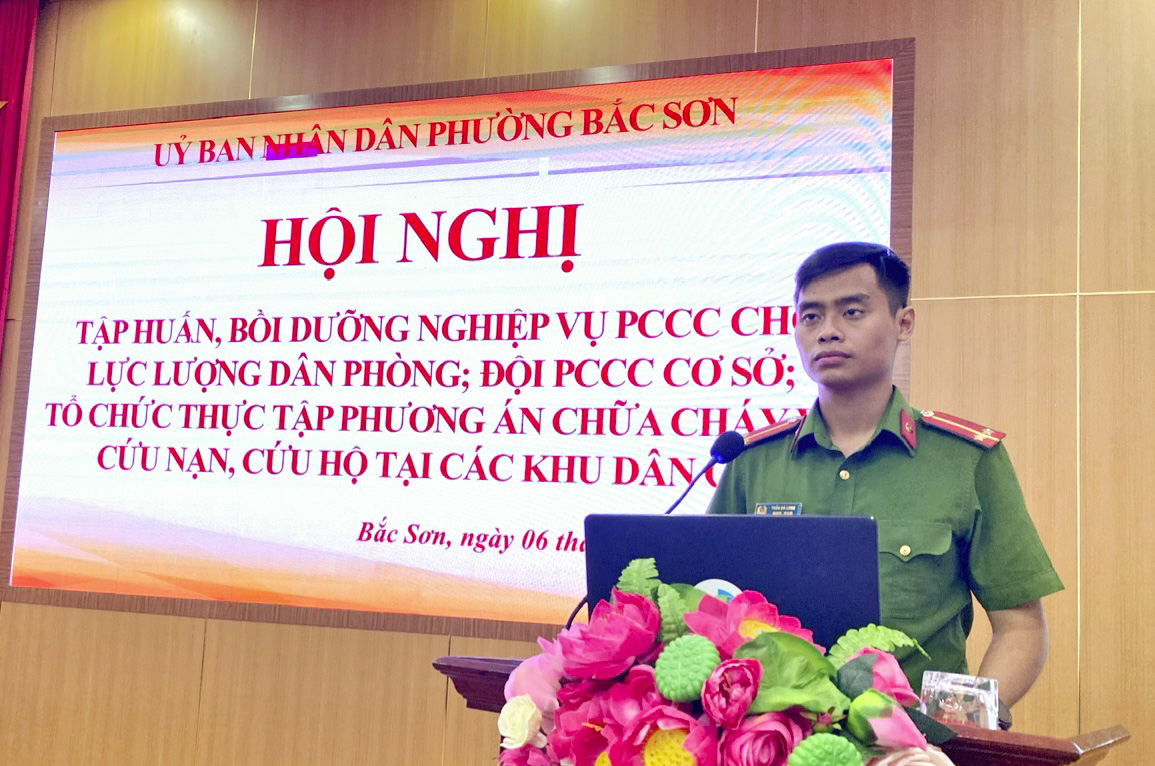 Ngày 6/6, UBND phường Bắc Sơn phối hợp với Đội Cảnh sát PCCC và CNCH Công an thành phố tổ chức tập huấn, bồi dưỡng nghiệp vụ PCCC và CNCH cho lực lượng dân phòng và lực lượng PCCC cơ sở.