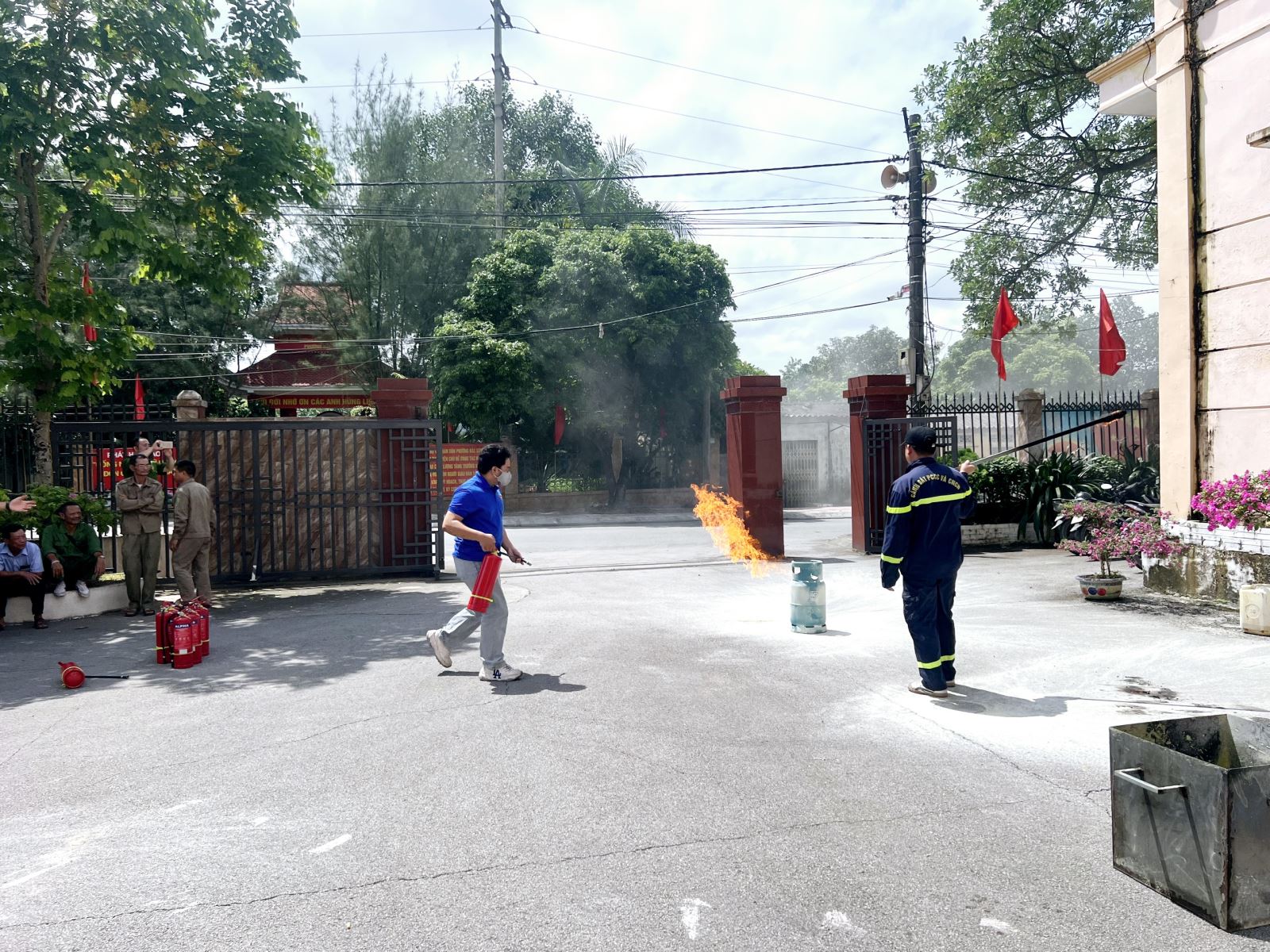 Tiếp đó, cán bộ Đội Cảnh sát PCCC và CNCH Công an thành phố đã hướng dẫn chi tiết thao tác sử dụng bình chữa cháy cũng như kỹ năng xử lý để dập tắt đám cháy cách hiệu quả, an toàn và nhanh nhất.