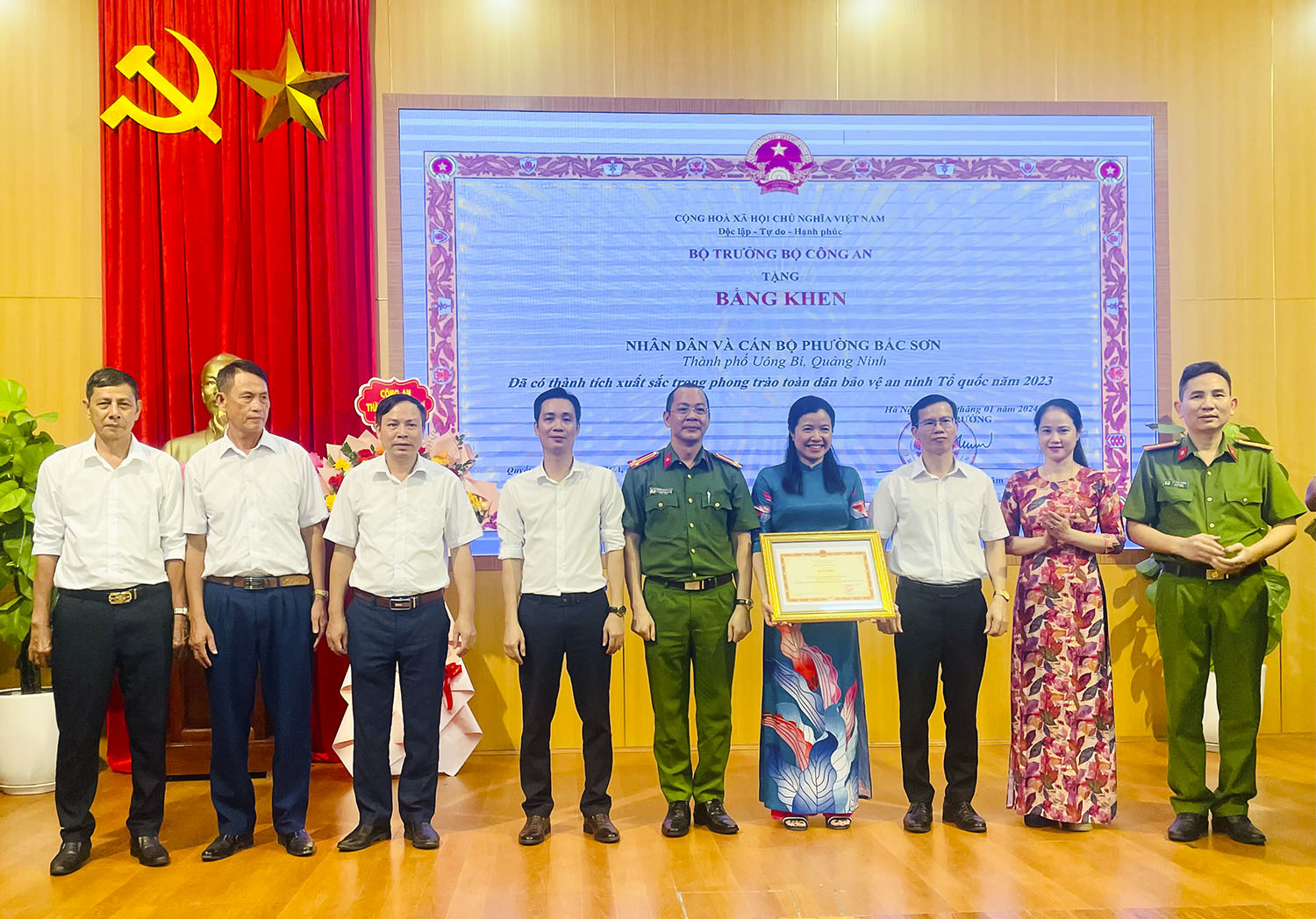 Cán bộ, Nhân dân phường Bắc Sơn vinh dự nhận Bằng khen của Bộ Công an.