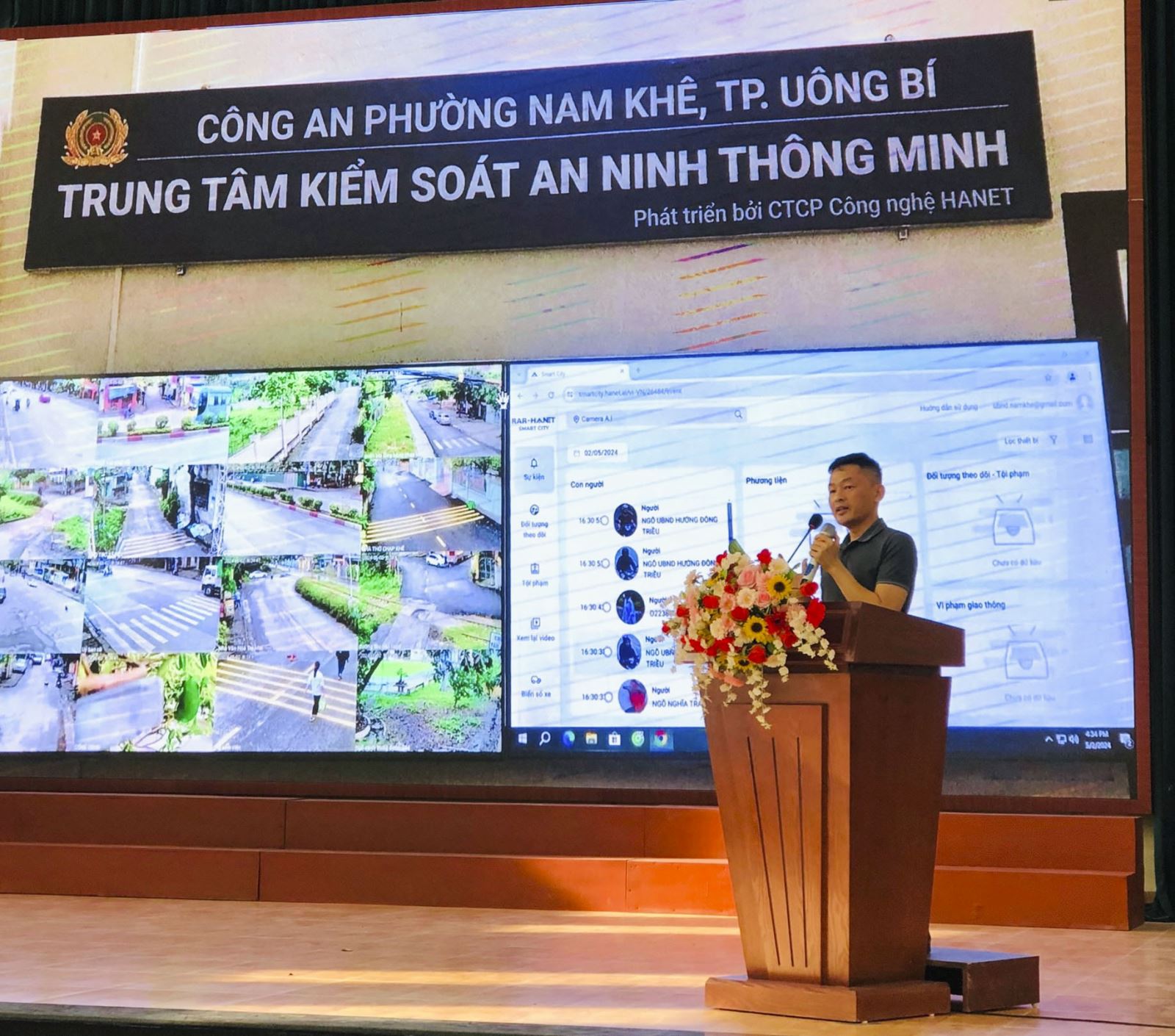 Đại diện đơn vị cung cấp giải pháp kiểm soát an ninh xã phường thông minh giới thiệu tại hội nghị.