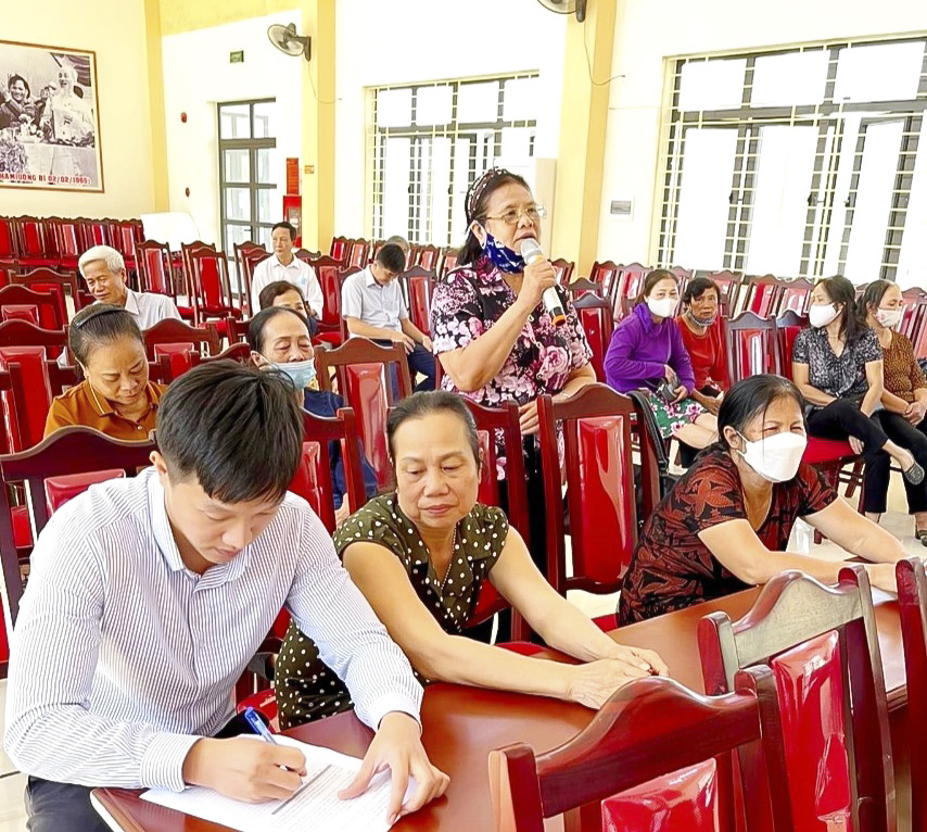 Với tinh thần dân chủ, thẳng thắn, cởi mở và xây dựng, tại hội nghị, Nhân dân đã đề xuất, kiến nghị một số vấn đề như: đề nghị phường hỗ trợ kinh phí hoàn thành khắc phục một số điểm sạt lở và bề mặt chưa được xử lý tại ngõ 200, tổ 4, khu Nam Trung; cần ghi rõ nội dung trên giấy công nhận đối với “Gia đình văn hoá tiêu biểu” hoặc “Gia đình văn hoá xuất sắc”, tránh ghi chung chung; đề nghị điều chỉnh cấp lại bìa đỏ đối với những hộ gia đình hiến đất làm đường giữa làng thuộc khu Chạp Khê; công trình kênh N2 kéo dài quá lâu gây ảnh hưởng rất nhiều tới đời sống của Nhân dân trong khu; có biện pháp xử lý hố chất thải gây mất vệ sinh môi trường tại công viên sinh viên; giải thích lý do đặt tên Phố Hoàng Chính…