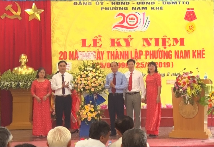 Thay mặt lãnh đạo thành phố, đồng chí Bí thư thành ủy, Chủ tịch HĐND thành phố đã trao tặng cán bộ và nhân dân phường Nam Khê lẵng hoa tươi thắm cùng bức trướng mang dòng chữ: Nhân dân và cán bộ phường Nam Khê phát huy truyền thống cách mạng, đoàn kết - đổi mới - năng động -sáng tạo xây dựng phường Nam Khê giàu đẹp, văn minh.