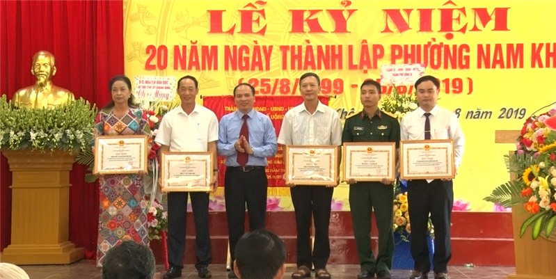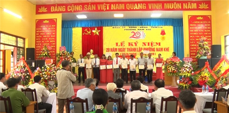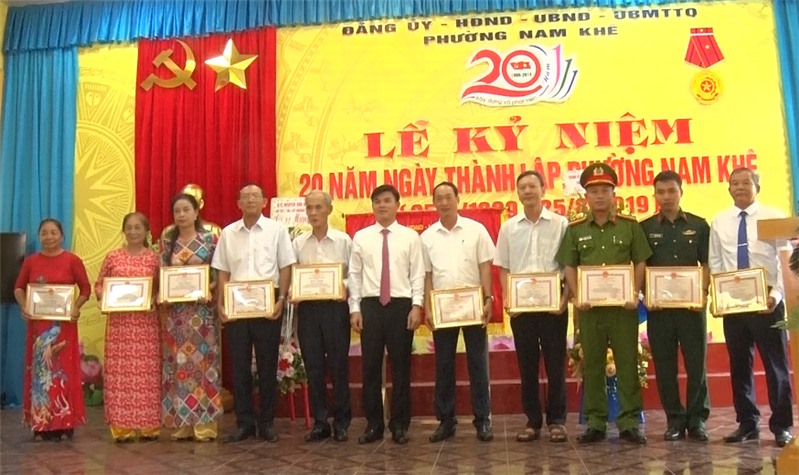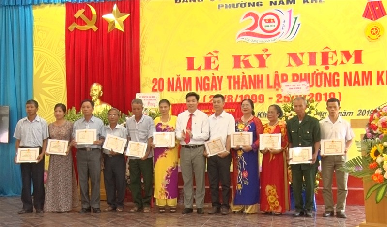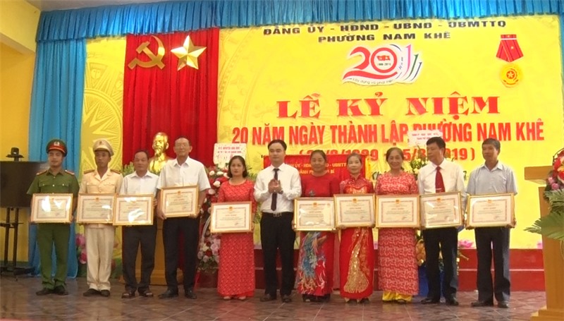Tại buổi lễ, UBND thành phố và phường Nam Khê đã khen thưởng cho các tập thể và cá nhân có thành tích xuất sắc trong 20 năm xây dựng và phát triển phường Nam Khê.