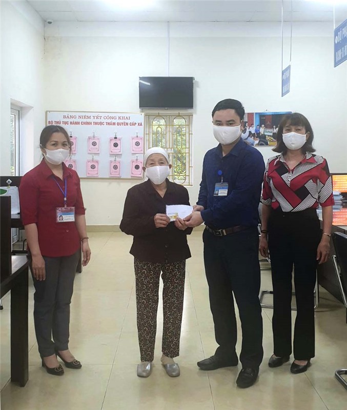 Cụ Bùi Thị Nỉnh trực tiếp đến phường Nam Khê ủng hộ số tiền 1 triệu đồng để giúp đỡ các hộ khó khăn hơn mình.