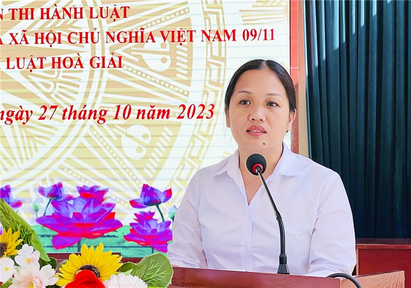 Lãnh đạo UBND phường Nam Khê báo cáo tổng kết 10 thi hành Luật hòa giải ở cơ sở.