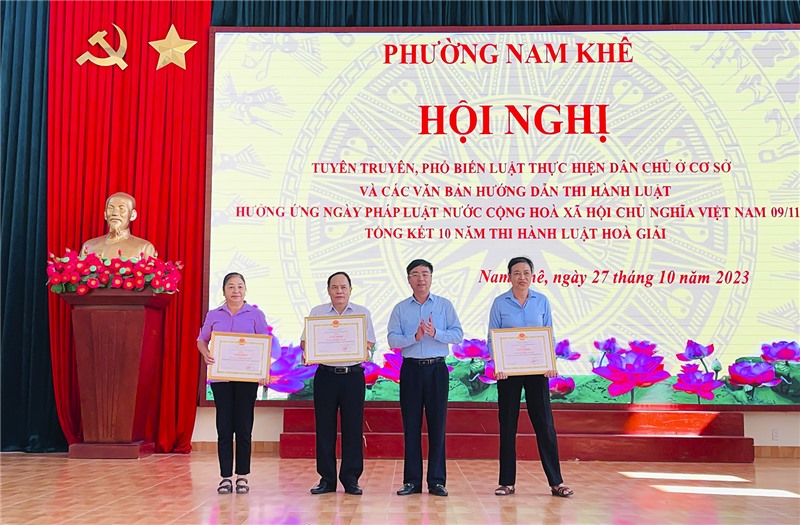 Nhân dịp này, UBND phường Nam Khê đã khen thưởng các tập thể, cá nhân có thành tích trong 10 năm thực hiện Luật hòa giải cơ sở.